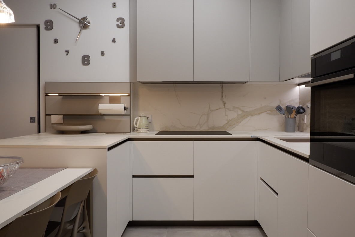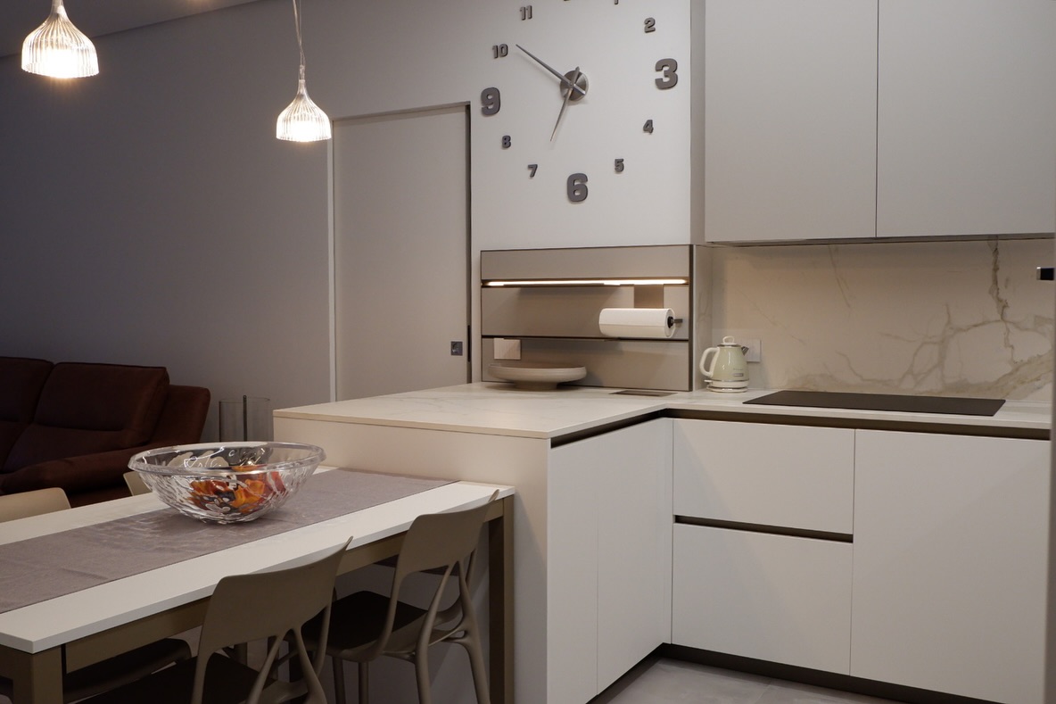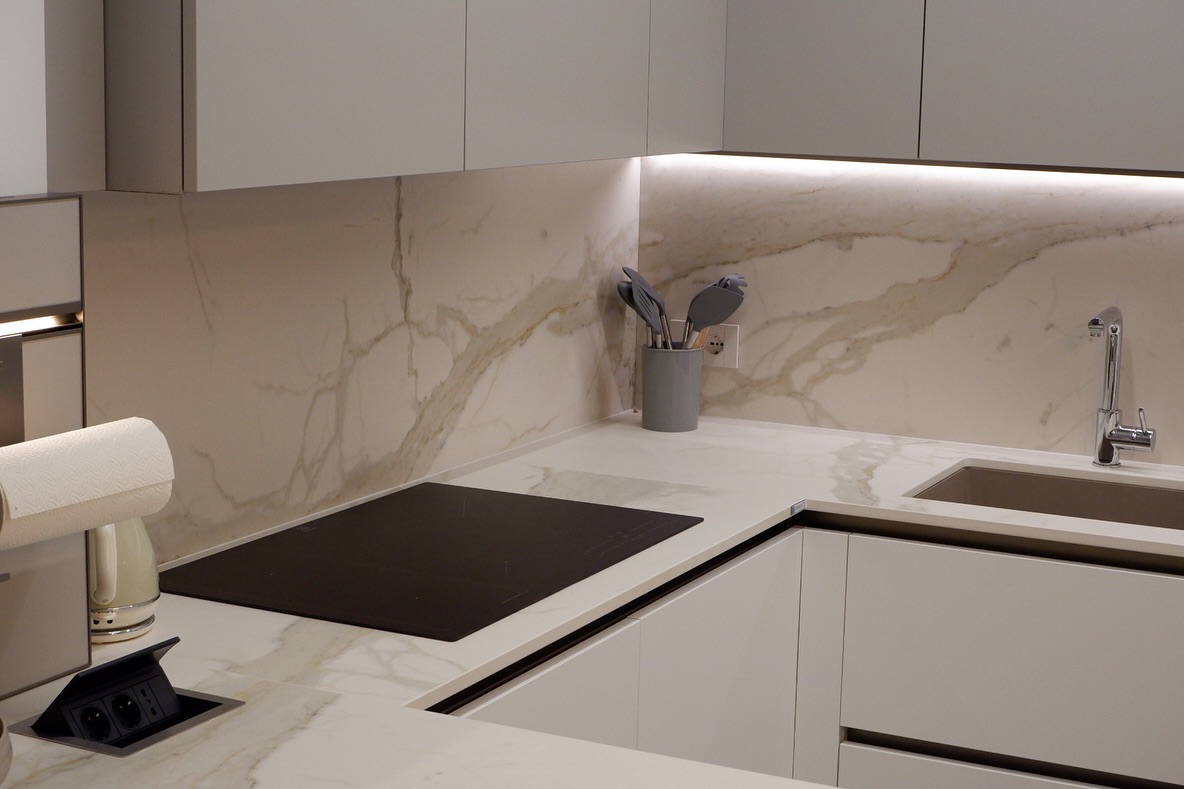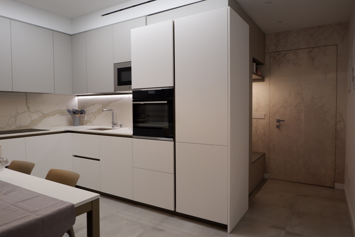 Abbiamo realizzato questo progetto su misura con il modello Lounge di Veneta Cucine, caratterizzato da ante in laccato soft-touch e da top e schienali in ceramica Calacatta: eleganza, resistenza e stile senza tempo.